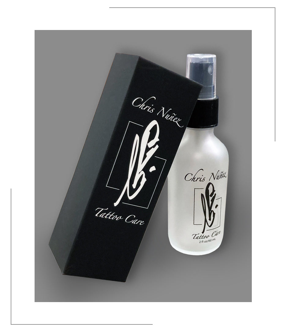 Chris Nuñez Tattoo Care is all-natural and keeps your tattoos healthy! Care for your skin and tattoos like the professionals do.